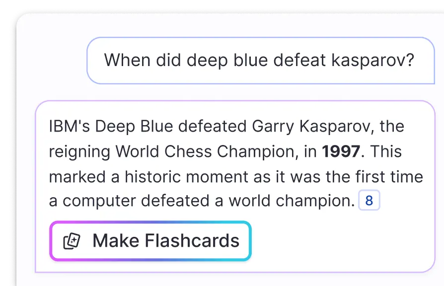 Ask questions, resolve confusion, and stay in flow while mastering complex topics.