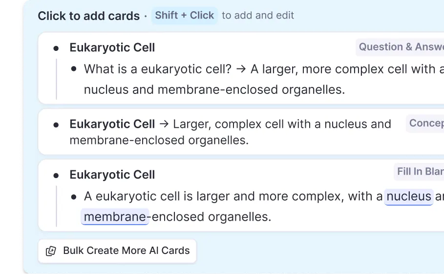 Use evidence-based memory techniques to create flashcards that resurface at the best time for retention, right within your notes.