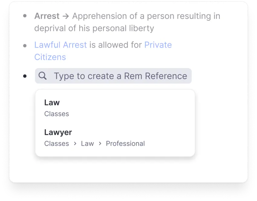 RemNote scales with you throughout your studies and career. Build a life-long knowledge base that you can rely on for academic and professional success.