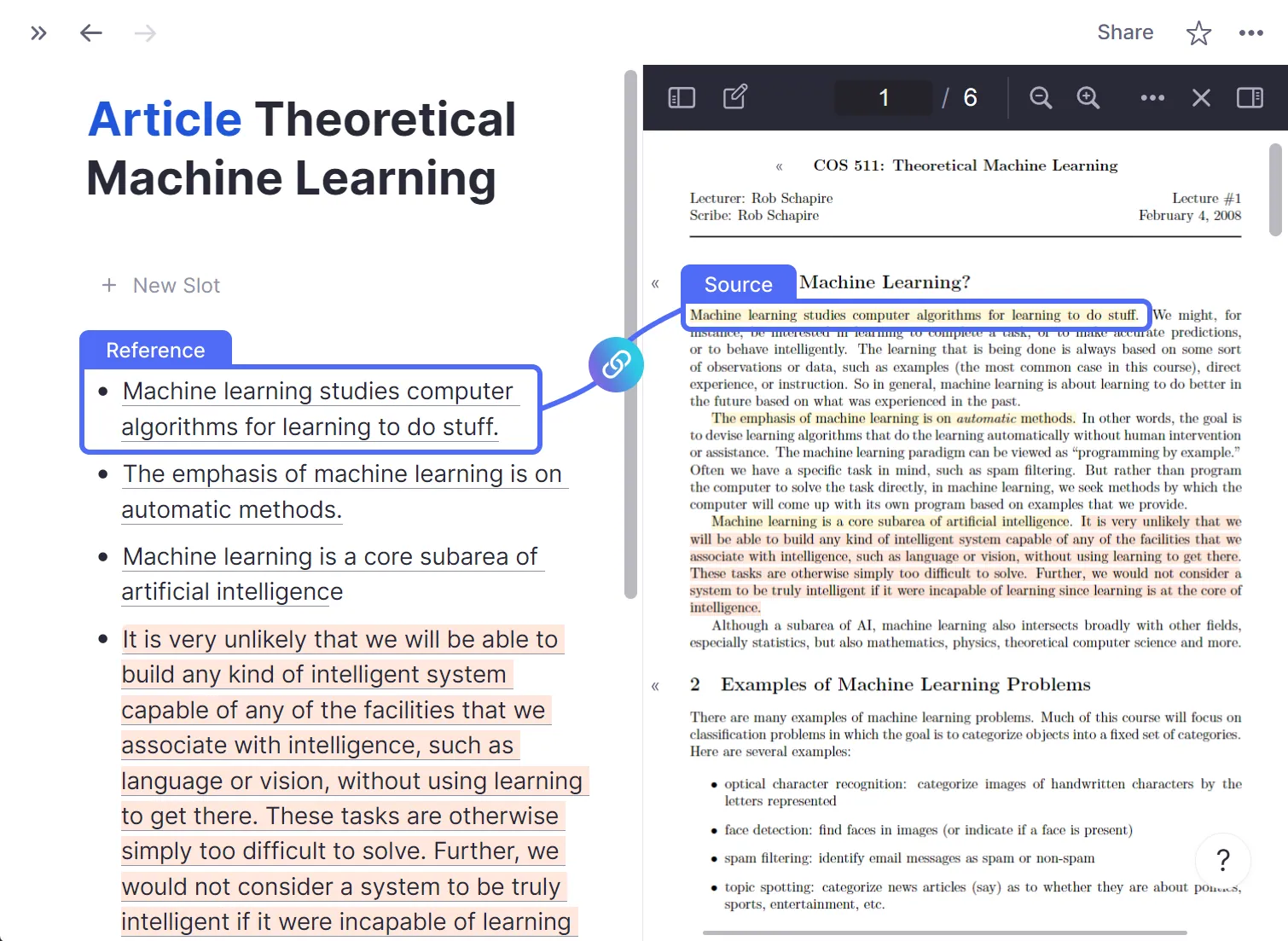 Craft mind-map-style notes, connect ideas with references, and annotate PDFs right within your notes.
