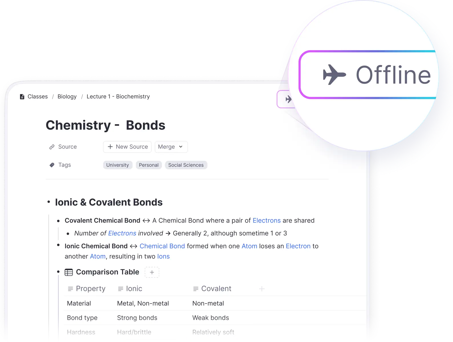 Keep your notes at your fingertips, whether you're online or offline. You can access your notes anytime and anywhere, even at the beach.Access your notes anytime and anywhere - even at the beach.